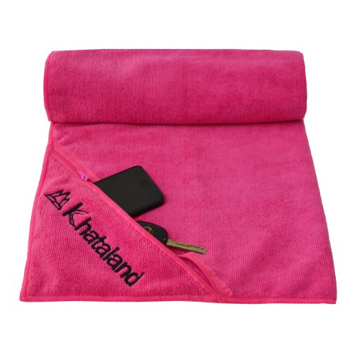 Khataland premium sports/fitness/gym towel features a specially designed zipper pocket that safely stores your essentials such as cell phone, keys, ensuring a worry free practice. Made of 100% premium microfiber, the towel is super absorbent, fast drying, soft and lightweight. Great companion for all types of exercises.Feature