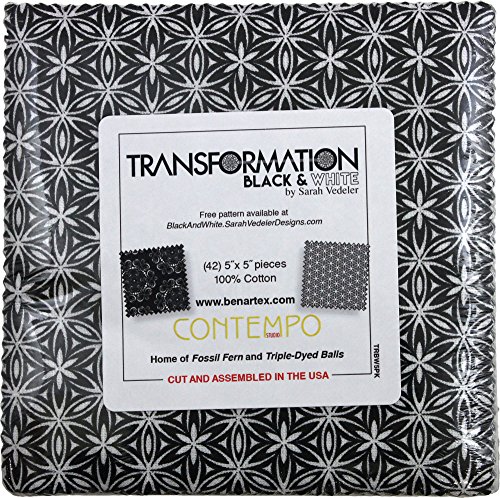 Sarah Vedeler Designs Transformation Black & White 5X5 Pack 42 5-inch Squares Charm Pack Benartex