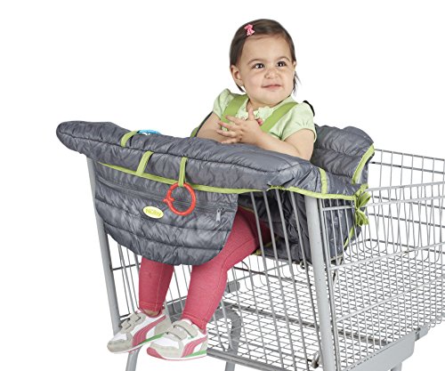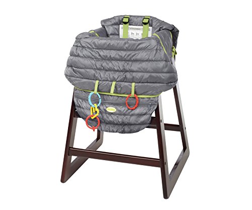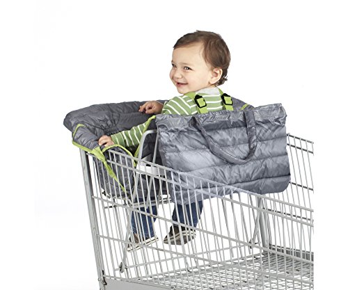 Nuby 2-in-1 Quilted Shopping Cart and High Chair Cover, Grey, Green, Universal Size, Baby Grocery Cart Cover, Infant High Chair Cover, Safety Harness, Folds into...