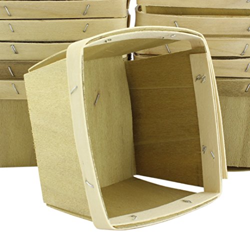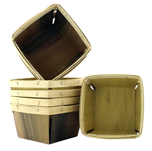One Quart Wooden Berry Baskets (8-Pack); 5.5” Square Vented Wood Boxes for Fruit Picking or Arts & Crafts