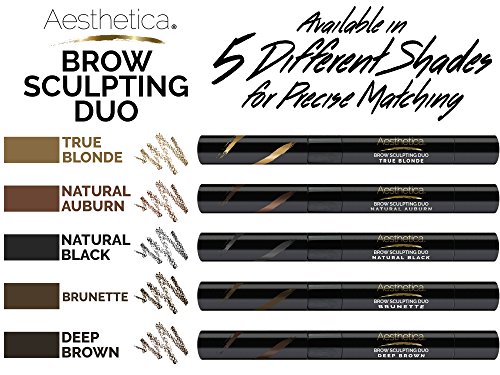 The Aesthetica Brow Sculpting Duo helps you expertly blend and set natural color into sparse or weakly shaped brows. The double-ended pigment and gel adhere to skin and hair for a well-defined, flawless finish.