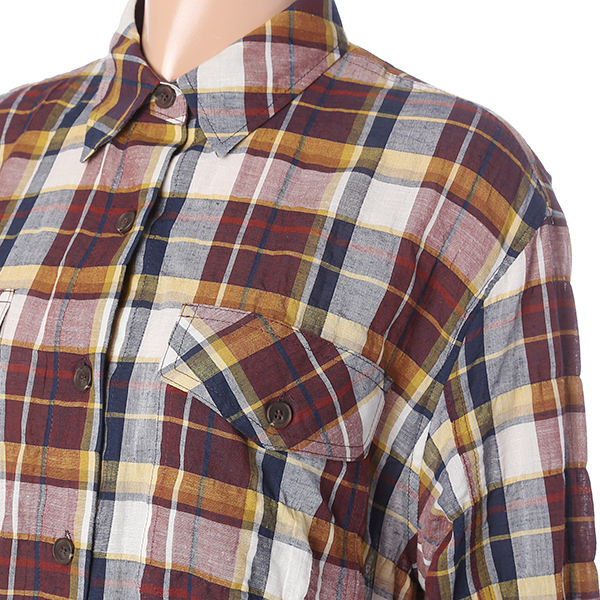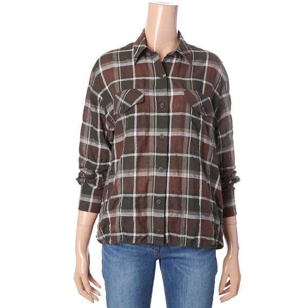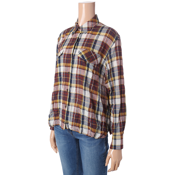 자연스런 구김들이 인상적인 체크 패턴의 블라우스 입니다.