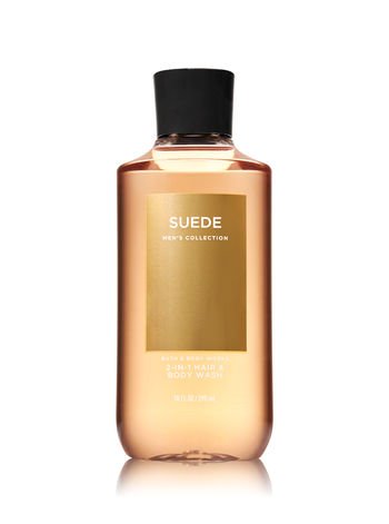 Bath & Body Works Suede Men's 2-IN-1 Hair & Body Wash 10 Oz. : A robust yet luxurious blend of the world's finest ingredients made for men. Vitamin E and Aloe Vera combine with Shea Butter to nourish skin, while a rich lather delivers an all-over fresh fragrance experience. Fast-rinsing formula works on skin & hair for our most convenient way to clean. FRAGRANCE: Project confidence with this classic combination of smooth suede, warm cedar & oakmossFeature