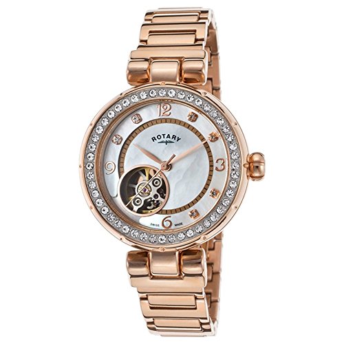 Rotary Lb002-A-41 Women's Auto Rose-Tone Stainless Steel Mop Dial Rose-Tone Ss Watch