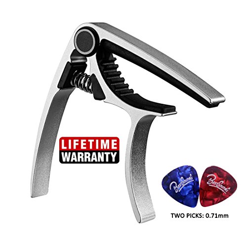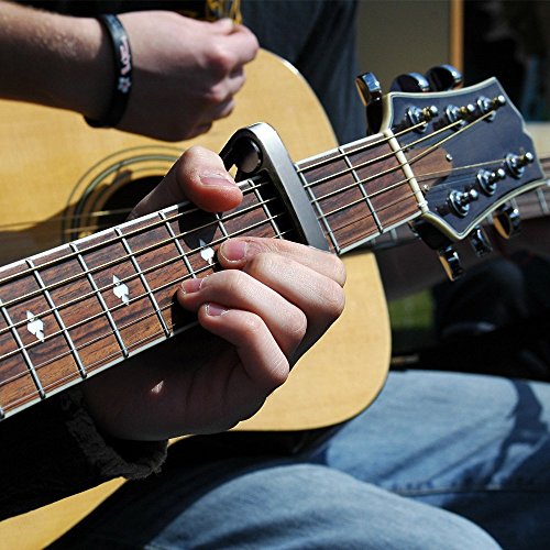 Rinastore Guitar Capo - Acoustic & Electric Guitar Capo - Ultra Lightweight Aluminum Metal for 6 & 12 String Instruments (MMS-Silver)