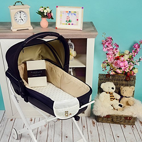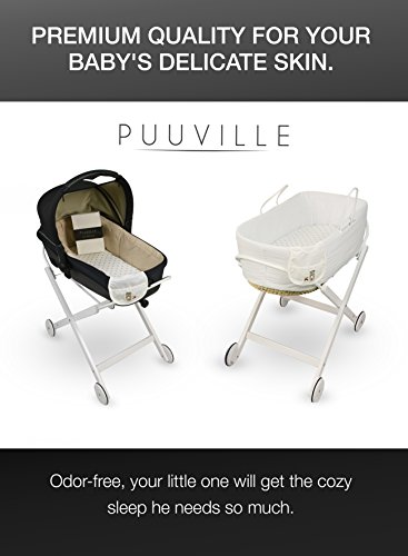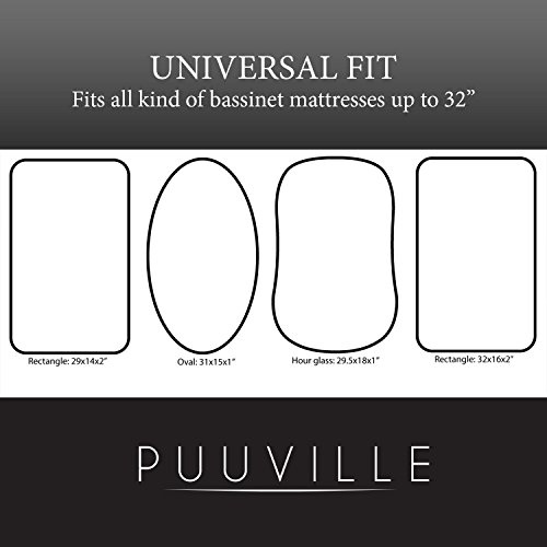 Studio : PUUVILLE Publisher : PUUVILLE Binding : Baby Product Product Description Puuville proudly presents a universal-fit bedding linen item to cover baby bassinet mattresses. Delivered in premium packaging, it's the perfect baby shower or baby registry gift you've been looking for. In packs of 2, they can be successfully used as sheets for any type of bassinet. Maintaining form after washing, with secure gripping and two different chemical-free printed patterns, the premium grade sheets allow long-lasting use.