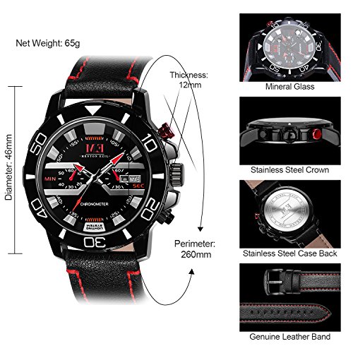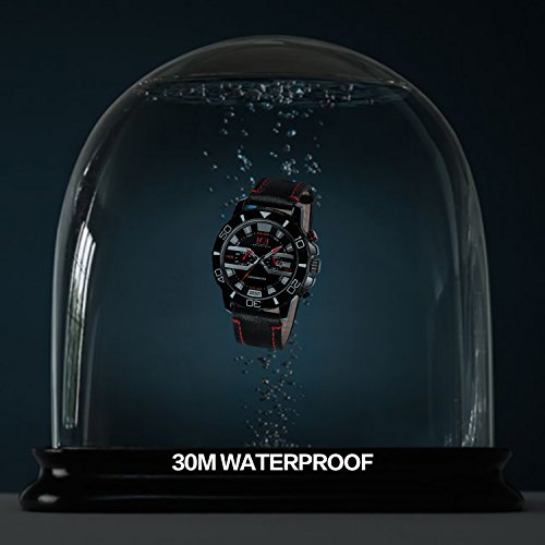 HIGH QUALITY COMPONENTS - Imported Japanese movement ensures precise time keeping within ±1s deviation per day. Scratch-resistant acrylic crystals glass, long-usage Japanese battery, anti-friction and genuine leather watch strap, stainless steel buckle and back case