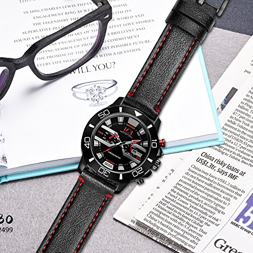 4. Comfortable Adjustable Leather Band Strap: High quality black genuine leather band with Buckle provide comfortable wearing experience and convenient to adjust the wirst, fits for all wrist sizes.