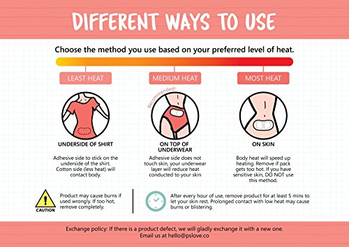 CONVENIENT & EASY TO USE- Simply open packaging and MenstruHeat will gradually heat up on its own! Different levels of heat are available by changing your usage method.