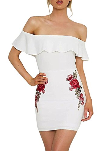 -. Feature : Stretchy material, Soft and breathable to wear / Stunning off the shoulder neckline with sweet ruffled detail overlying / Form fitting, Above knees/ Knee length / Short sleeve, A curve-hing silhouette, Very flattering / Versatile sheath mini dress suits for Evening, Wedding, Cocktail, Homecoming, Party, Casual, Night Club and so on