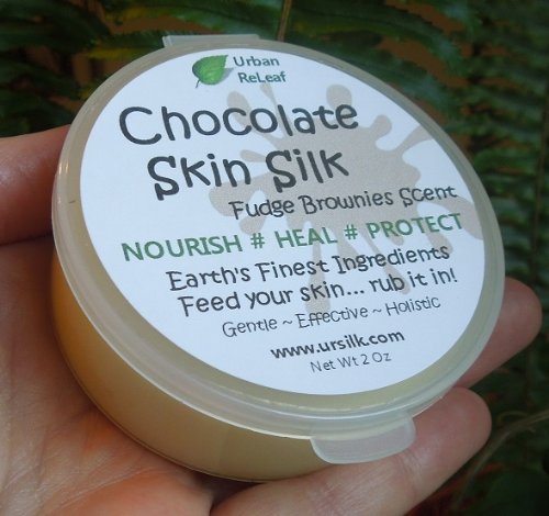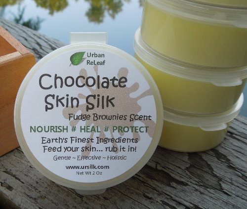 -. Title : CHOCOLATE SKIN SILK! Heal your skin and SMELL YUMMY while you do it! Amazing on freshly shaved legs & everything else! Drive him crazy! 2 oz Cream Rich Brownies scent! BODY Lotion! Nourish Heal Protect, Vitamins Rejuvenate! Feed your skin... rub it in! Organic Shea Butter, Coconut & Olive Oil, Soywax, Scent.