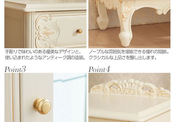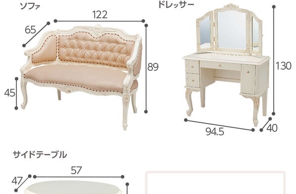 ■ 品質/本体フレーム・脚部・天飾り:天然木マホガニー材(アイボリーホワイト)、天板・前板・側板:中質繊維板
