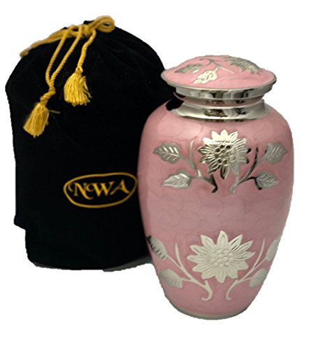 Beautiful Pink Cremation Urn, Memorial Brass Adult Human Urn with Velvet Bag
