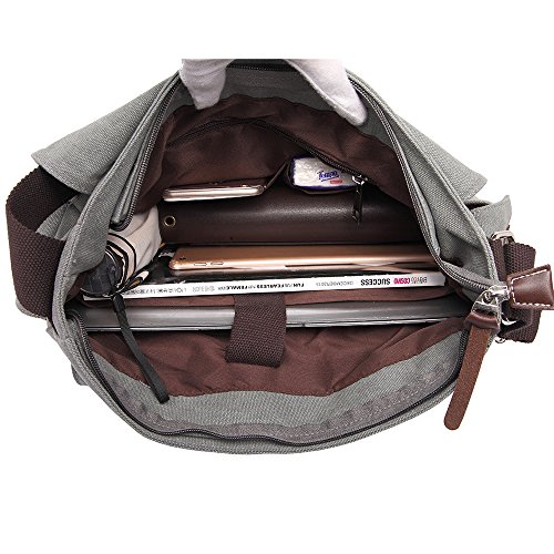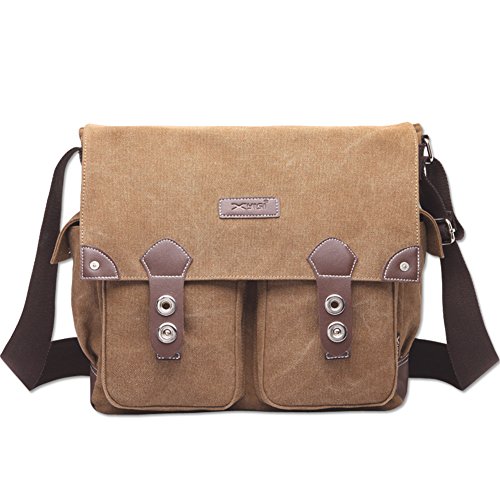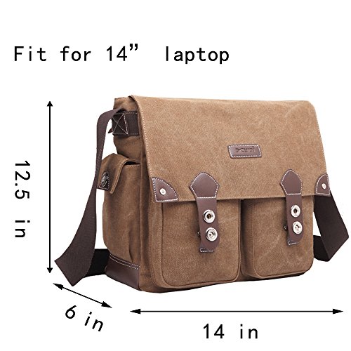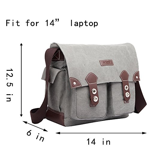 -. Brand : Mygreen -. Feature : 90%canvas, 10% leather / 100% brand new and High quanlity canvas & cow leather / Approx Dimensions: ( Medium: 13.4" L x 10.3" H x 3.54"W ) , ( Large: 14" L x 12.5" H x 6"W ) The small one can hold 13 inch laptop, the large one can hold 14 inch laptop / Adjustable shoulder strap / Easy to organize small things: phone, books, pen, pad etc. -. ProductGroup : Apparel -. ProductTypeName : LAGE -. Title : Mygreen Men's Shoulder Bag, Vintage Canvas single Shoulder Cross Body 13" Laptop Messenger Satchel