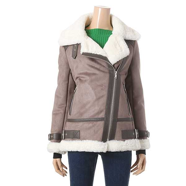 라이트브라운 색상의 트렌디하며 세련된 분위기가 돋보이는 무스탕 자켓 입니다. 벨티드 장식으로 스타일리시한 느낌을 더해줍니다.