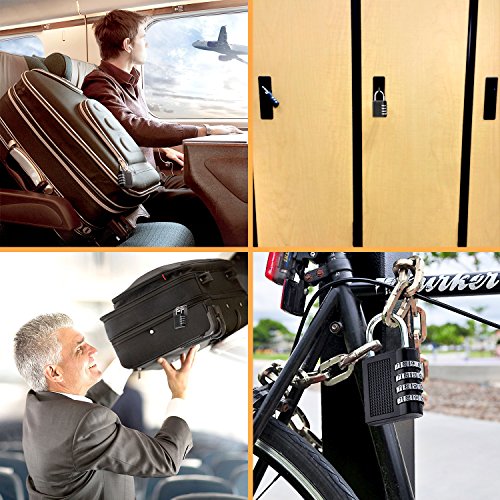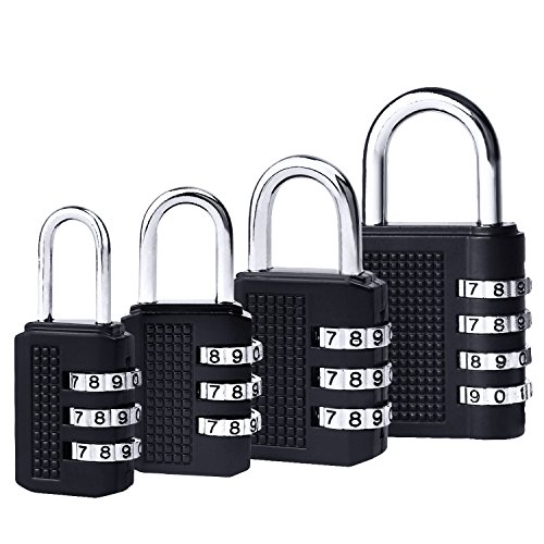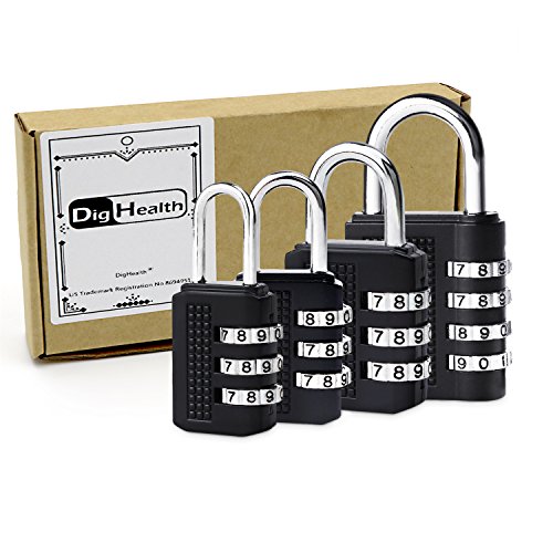 4 Pack Combination Padlocks by DigHealth, Weatherproof, Keyless and Multiple Size, 3 or 4 Digit Code Locks, Resettable Number Password Locks for Gym & School Lockers, Luggage Suitcases (black)