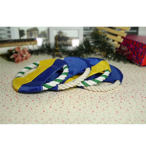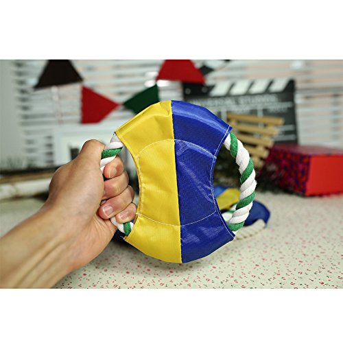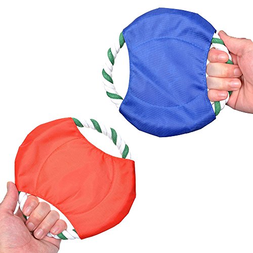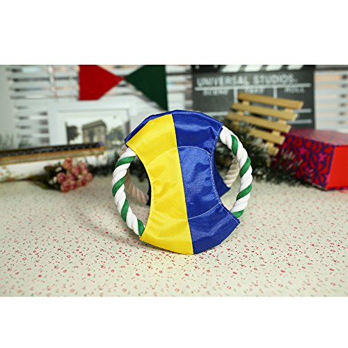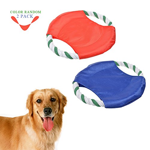 Feature : Make of cotton rope and water-proof Oxford cloth, safe non-toxic, resistance to bite wear-resisting / Soft rope material and light weight, protect the pet's teeth and gums when they are catching the Frisbee / Training your puppy to enhanced their body physique, also improve the emotion between you and your puppy / Measures about 16cm in diameter, 2 Pcs will be shipped / The colors of Frisbee are all bright so you and the dog will be able to see it when it is in the air