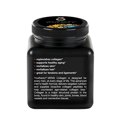 Advanced FormulaPromotes healthy agingSupports bone healthGreat for ligaments & tendonsRejuvenates hairMen's Collagen Advanced is the protein that binds cells together. It is our body's key structural protein for creating strong and healthy muscle, tendons and ligaments. The added ingredients in Mens Collagen rejuvenates your hair. Mens Collagen is critical to the formation and ongoing health of your body. Stay strong and youthful as you age with youtheory Men's Collagen Advanced.Feature