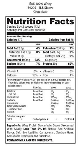 EAS 100% Pure Whey Protein Powder, Chocolate, 5lb Tub, 30 grams of Whey Protein Per Serving (Packaging May Vary)