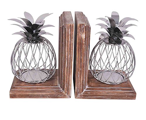 Benzara Metal Pineapple Book Ends, Set of 2, Silver Bookend