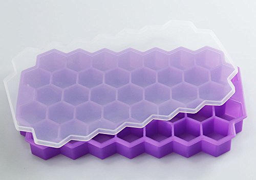 Ice Cube Tray Silicone Hexagon Ice Moulds Honeycomb Ice Cube Flexible Rubber Plastic Easy Release with Lids 2 Pc
