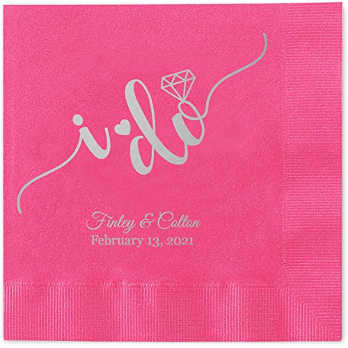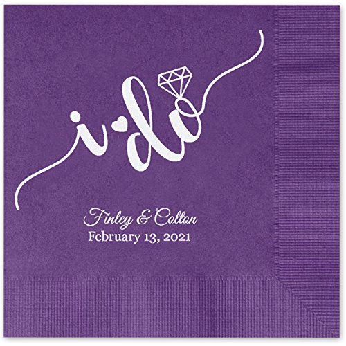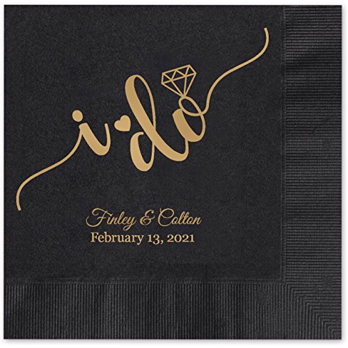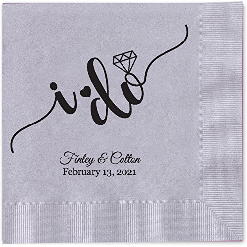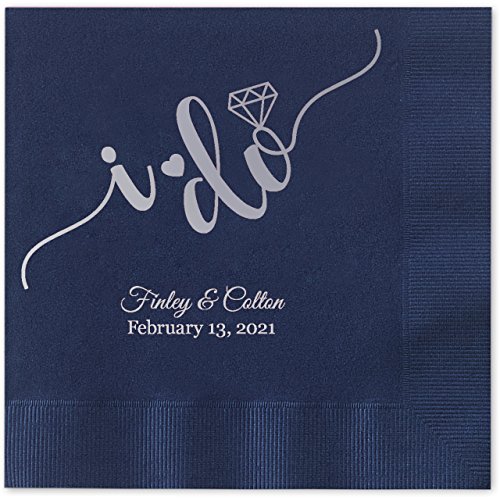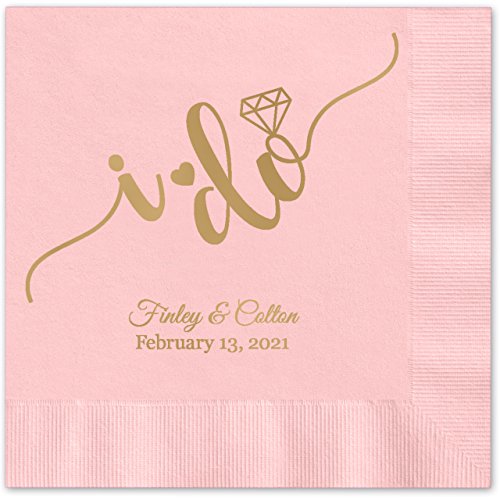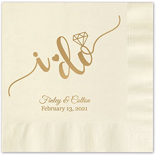 -. Title : I do Calligraphy Personalized Beverage Cocktail Napkins - 100 Custom Printed Paper Napkins with choice of foil