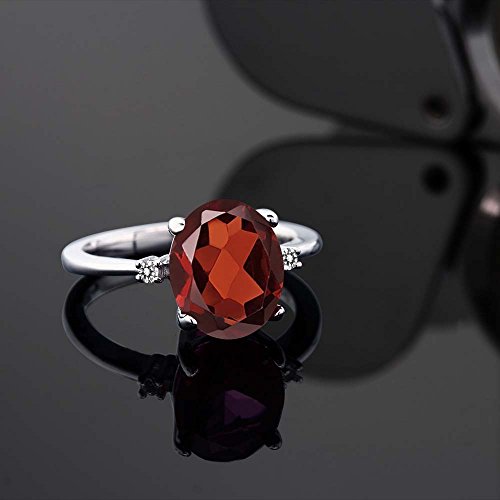 -. Title : 2.86 Ct Oval Red Garnet White Diamond 925 Sterling Silver Ring (Available in size 5, 6, 7, 8, 9)