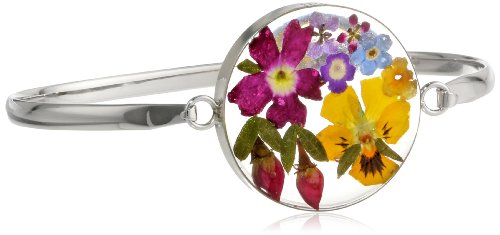 -. Title : Sterling Silver Pressed Flower Multi-Colored Round Bracelet, 7.5"