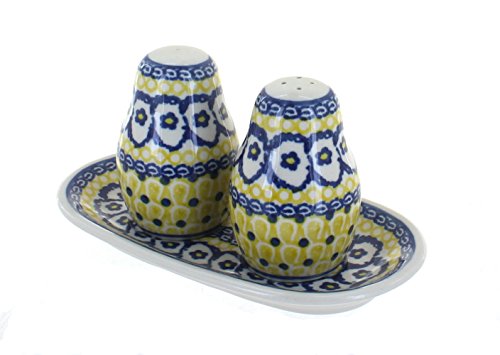 Polish Pottery Saffron Salt & Pepper Shakers with Tray