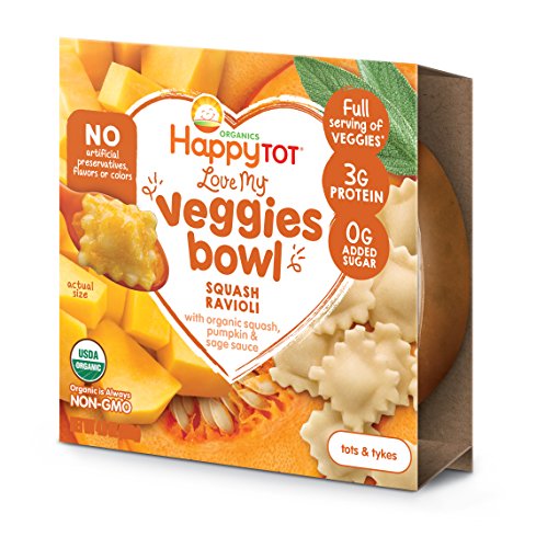 -. Binding : Grocery -. Brand : Happy Tot -. Label : Happy Tot -. Manufacturer : Happy Tot -. ProductGroup : Grocery -. ProductTypeName : GROCERY -. Publisher : Happy Tot -. Studio : Happy Tot -. Title : Happy Tot Love My Veggies Ravioli Meal Bowl with Marinara Sauce, Squash Ravioli, 4.5 Ounce