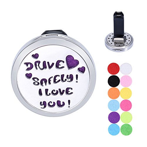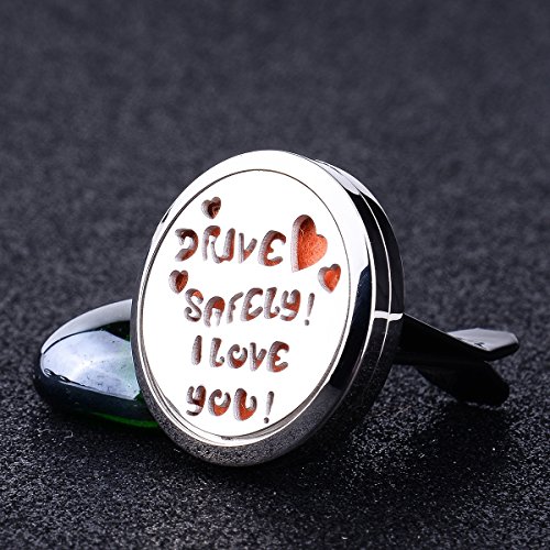 Engraved"DRIVE SAFELY I LOVE YOU"Aromatherapy Car Air Freshener Stainless Steel Essential Oil Diffuser Locket Vent Clip 12 Refill Pads