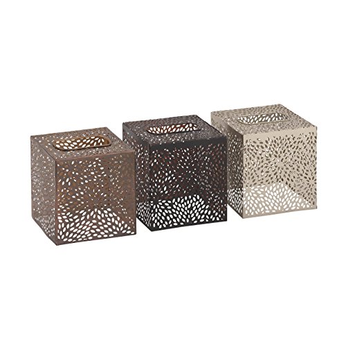 Deco 79 54222 Square Iron Tissue Boxes (Set of 3), Brown/Blackandsilver