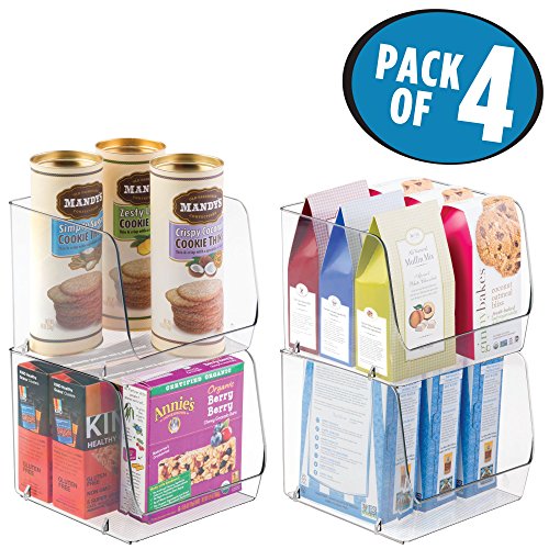 mDesign Stacking Organizer Bins for Kitchen, Pantry, Office, Bathroom - Pack of 4, Extra Large, Clear