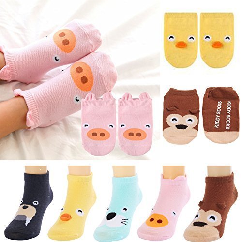 -. Feature : Toddler Anti Slip Skid Socks,Non-Skid Floor Walking Socks,Cartoon baby Socks, Animal Ankle Socks,Skid cotton sock Cute With gifts Card and 5 different style animal ,it is so cute,Pefect baby shower gifts. Each sock is designed with a slip resistant bottom to help out little beginning walkers. Each individual pair is brightly colored with a different design made to catch the developing baby's eyes. No shrinking, fading, or miss shaping / Walker No-Show Boat Footsocks sneakers baby Skid Ankle socks Size: To fit babies from 0 to 24 months boys and girls (feet size 10 to 13cm,can stretch) / Anti slip design for infant baby to wear at home, Anti-slip Animal socks is the protector of your child / Anti-skid sole skidproof Ankle Socks For season: SP.R.Ing, summer and autumn.Have good elastic - very practical for the rapid growth in babies / Cute Low Cut Sock Package Includes:5 pairs toddler socks + Gift mini card