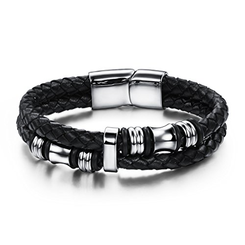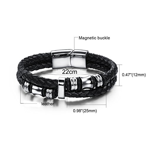 Jewow Schmuck Edelstahl Schwarz Leder Herren Armband 22CM