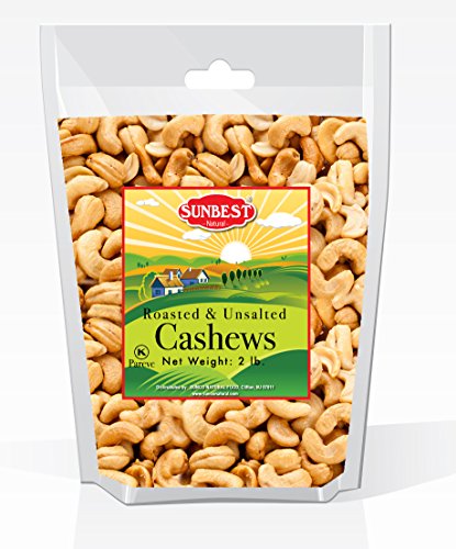 SUNBEST Whole Cashews Roasted and Unsalted (2 LBS) in Resealable Bag