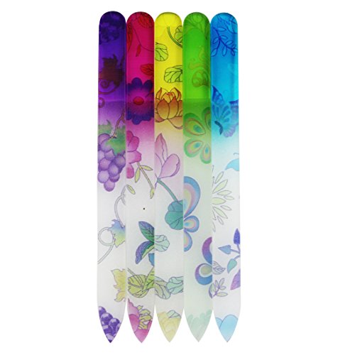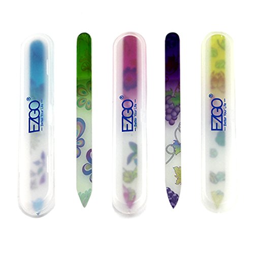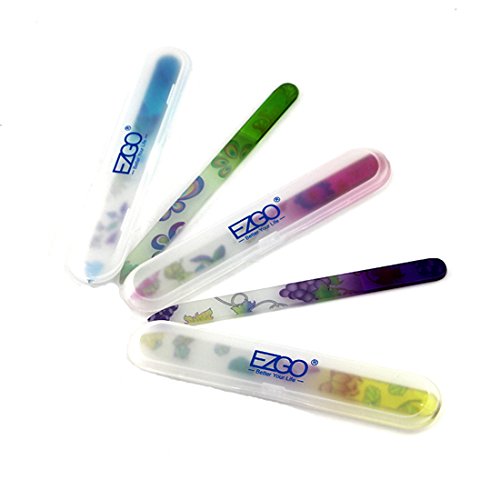 -. Title : EZGO 5 Pieces Colorful P.R.Inted Pattern Crystal Glass Nail Files Set, 5.5 Inches Double Sided Nail Art Quality Manicure Nail Buffer - Files Nails Gently In Any Direction
