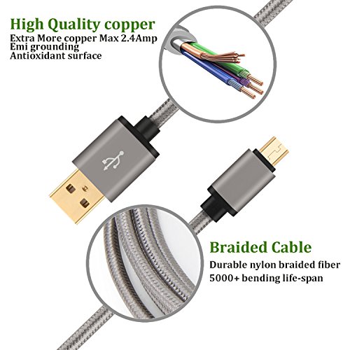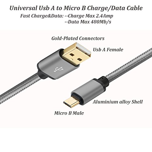 HI-CABLE 10ft 3m Gold-Plated Braided USB 2.0 A Female to Micro B male Charge/Data Cable Superior Construction Fast Charge & Sync Series, Special and Professional Design for The Fast Charging Wall Charger (Fit For Fast/Rapid/Quick Charger 2.0/ 3.0 More). Ensure a maximum charging speed up to 2.4A, Great performance ensures your devices syncs and charge simultaneously with up to 480Mb/s transferring speed.