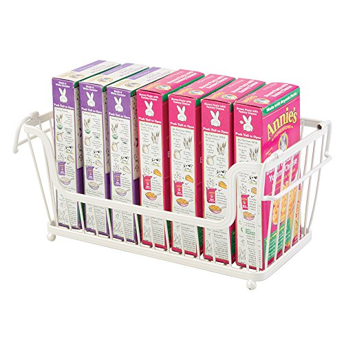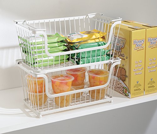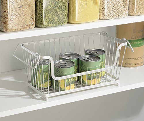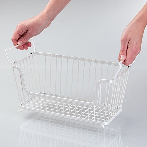 mDesign Stackable Household Wire Storage Basket with Handles for Kitchen Pantry, Cabinets - Pearl White