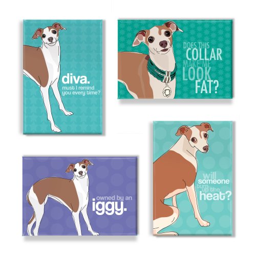 - Italian Greyhound refrigerator magnet gift set includes four different, fun Italian Greyhound designs