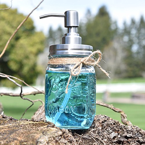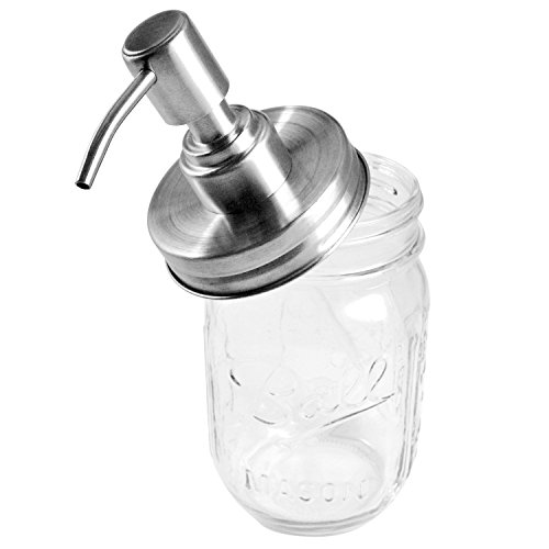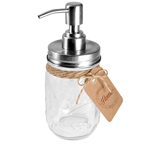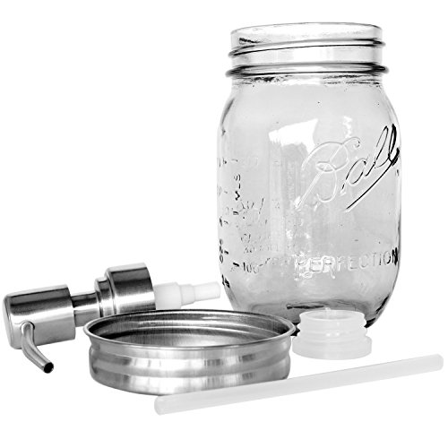 Rust Resistant, 304 18/8 Stainless Steel, Mason Jar Soap or Lotion Dispenser with Iconic Vintage Ball, 16 Ounce (Clear Glass) by Premium Home Quality