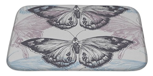 Gear New No Slip Microfiber Memory Foam Hand Drawn Butterfly Pattern Pastels Over Whit Bath Rug Mat, 34" X 21"