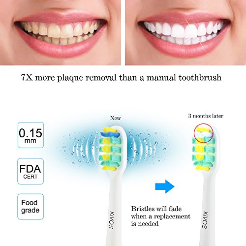 KIVOS sonic electric toothbrush for adult children:ABS handle with 2pcs Food Grade PP duPont brush heads. soft reminder bristles fade to ensure you know when it is time to replace them.