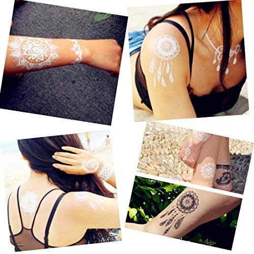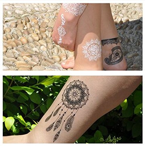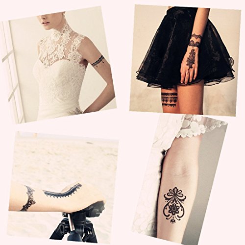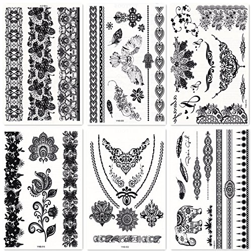 DaLin 6 Sheets Henna Temporary Tattoos Stickers Lace Tattoos for Girls Women Wedding Necklace Bracelets Patterns Black Tattoo