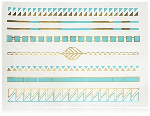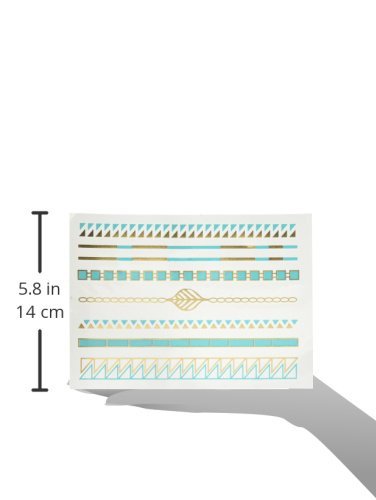 Akjo Group E [Design 34-41] [No.36] Temporary Metallic/Gold Tattoo, Silver/Turquoise Green