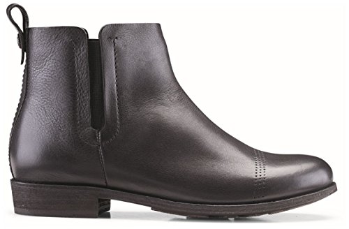- Upper - Full-grain tumbled leather with a matte finish, or smooth vintage leather. Chelsea boot construction with medial and lateral elastic gore. Broguing detail on vamp. Burnished finishing.