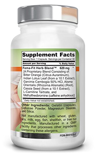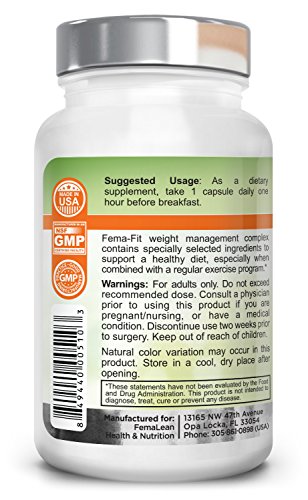 -. Binding : Health and Beauty -. Brand : Femalean -. EAN : 0849440005103 -. Feature : Support Healthy Fat Metabolism and Thermogenesis / Supports Healthy Weight Management. / Dietary Supplements -. Label : Femalean -. LegalDisclaimer : This information is intended for your general knowledge only and is not substitute for professional medical advice or treatment for specific medical conditions. This information is not intended to diagnose, treat, cure or prevent any disease. Always seek the advice of your qualified physician or other health care provider with any questions you may have regarding a medical condition. Keep out of reach of children. -. Manufacturer : Femalean -. MPN : 0849440005103 -. NumberOfItems : 1 -. PackageQuantity : 1 -. PartNumber : 0849440005103 -. ProductGroup : Health and Beauty -. ProductTypeName : HEALTH_PERSONAL_CARE -. Publisher : Femalean -. Studio : Femalean -. Title : Fema-Fit 500 mg 60 Caps - Natural | Non Stimulant | Thermogenic | Weight Loss | Fat Burner | For Women | Belly Fat Shred | Metabolism Booster | Appetite Suppressant for Her -. UPC : 849440005103