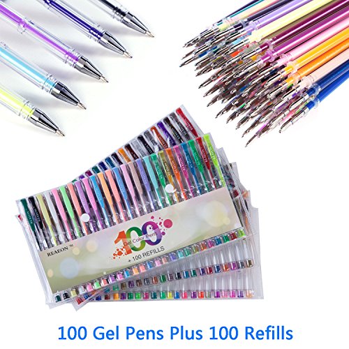 Reaeon 200 Gel Pens Coloring Set 100 Gel Pen plus Refills for Adults Coloring Books Drawing Painting Writing