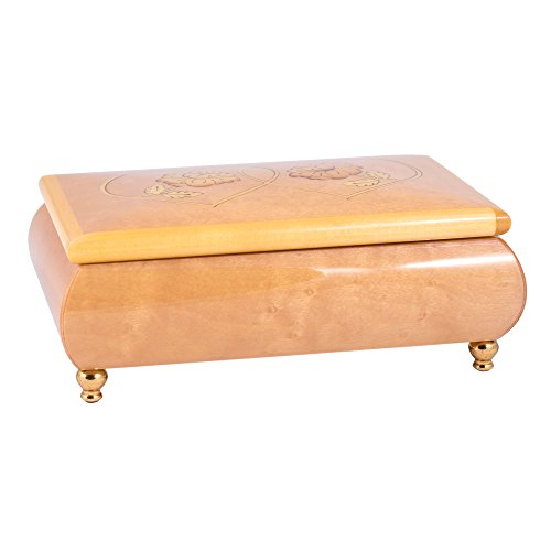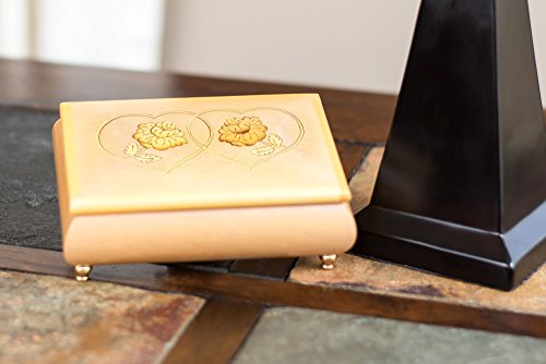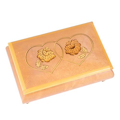 Hearts Lilac Italian Handmade Inlaid Wood Musical Jewelry Box - Plays Tune Chopin Nocturne, Op. 9