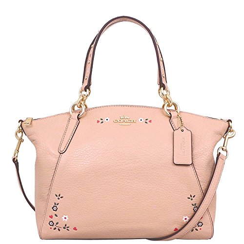 COACH SMALL KELSEY SATCHEL WITH FLORAL TOOLING F24599, NUDE PINK/LIGHT GOLD